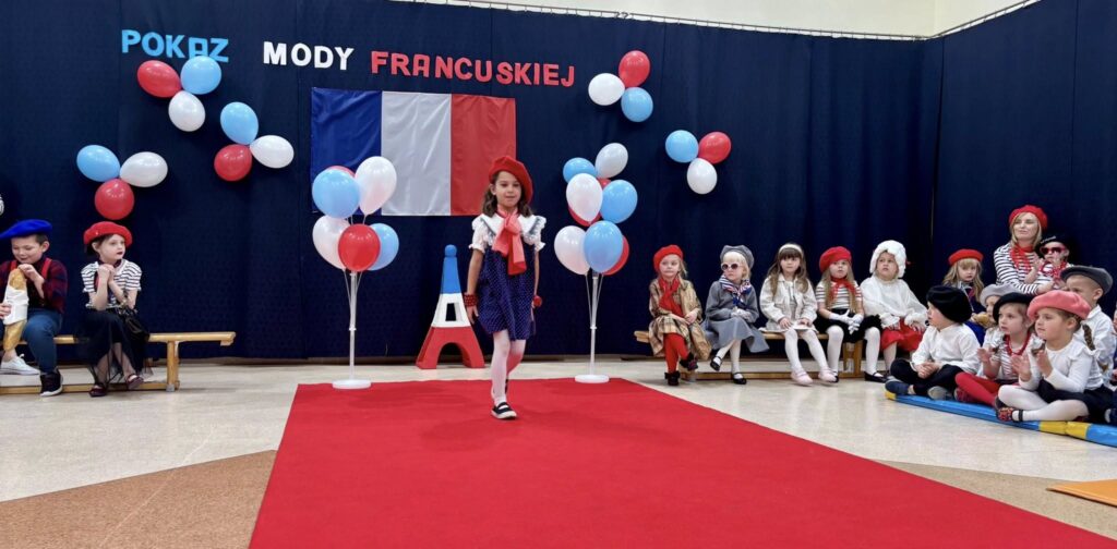 Dzieci przygotowały piękne stroje w stylu francuskim, w których zaprezentowały się na wybiegu podczas pokazu mody. ![]()